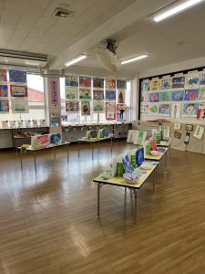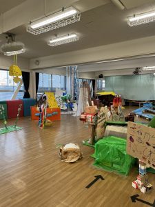 作品展では毎年テーマを決めて全学年で共同制作を行います。